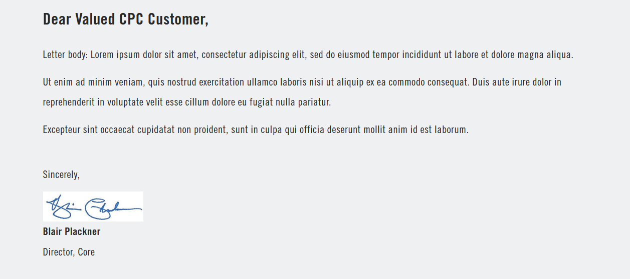 A message to users in the layout of a letter.