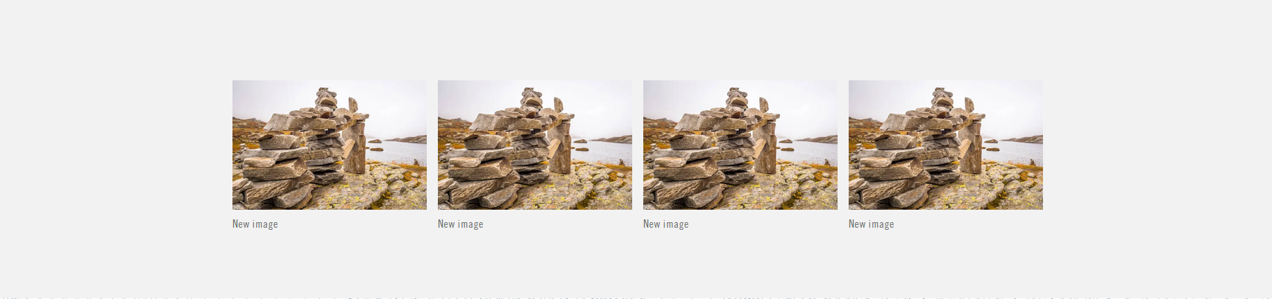 Component for four-image display. Provides a lightbox to view images by default (popup with grey screen overlay) and a caption generated by the caption input.