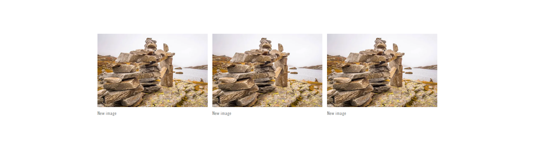 Component for three-image display. Provides a lightbox to view images by default (popup with grey screen overlay) and a caption generated by the caption input.