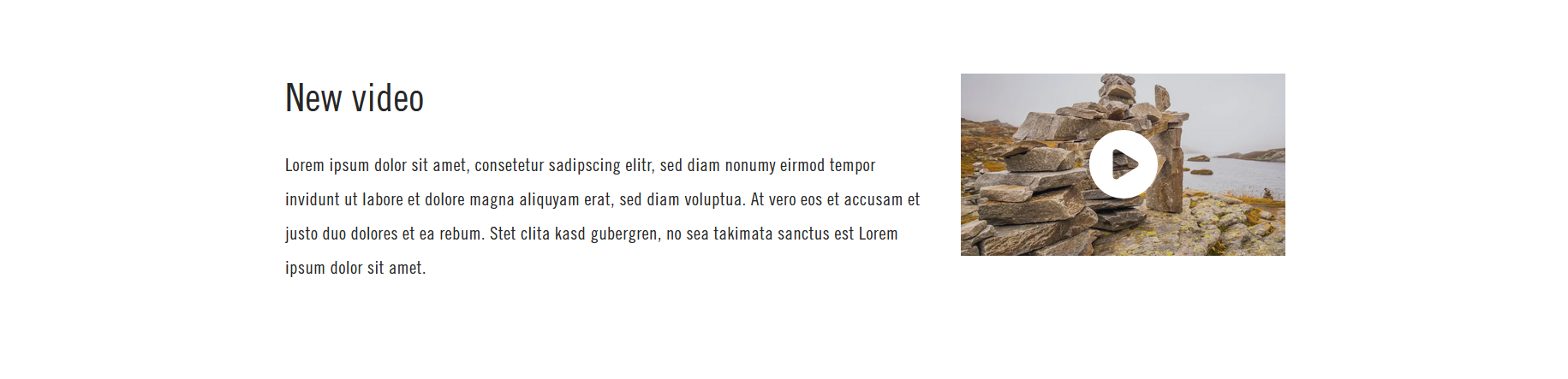 Various options for video displays on web pages. Usually one-column or two-column layouts with a video and text.