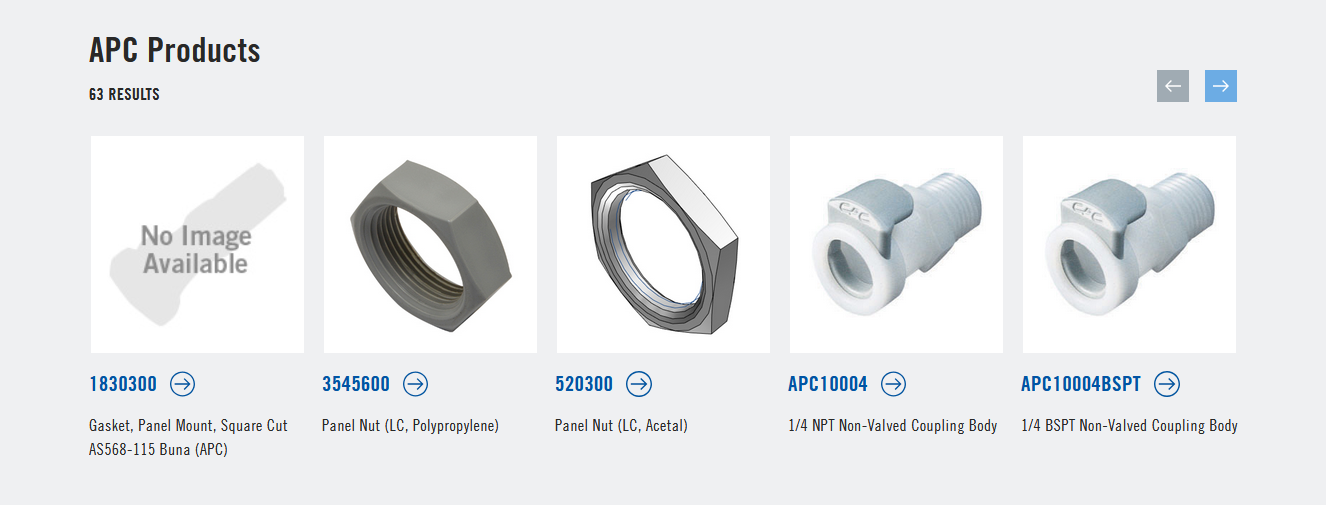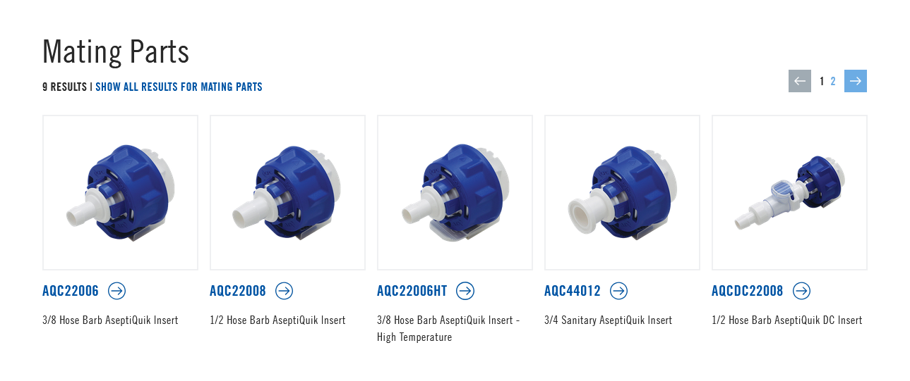 When using the "Product Source", the Product Carousel will display an additional selection for either Mating Parts, Additional Items, or Replacement Parts for the selected product.